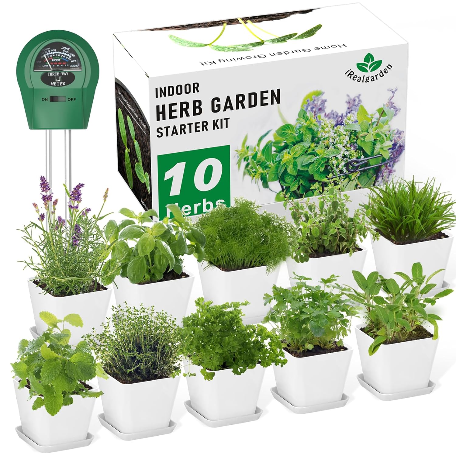 Indoor Herb Garden Kit – 10 Non-GMO Herb Seeds with Soil, Pots & Moisture Meter – Easy Windowsill Gardening Starter Set – Unique Gift for Gardeners, Home Chefs & Families